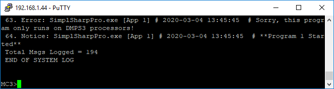 If you want, try loading this program to a non-DMPS processor to see that it does fail. You can check the error log (type errlog) to see our message: