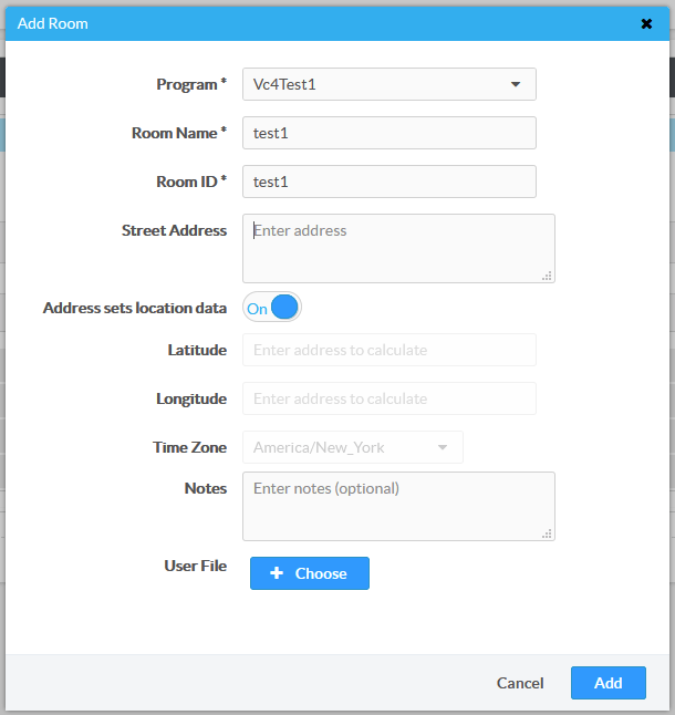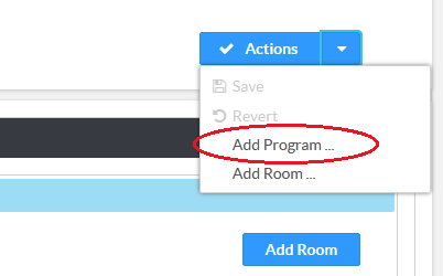Now that we have our program loaded to VC-4, we need to assign it to a room. Click Add Room to create a new room: