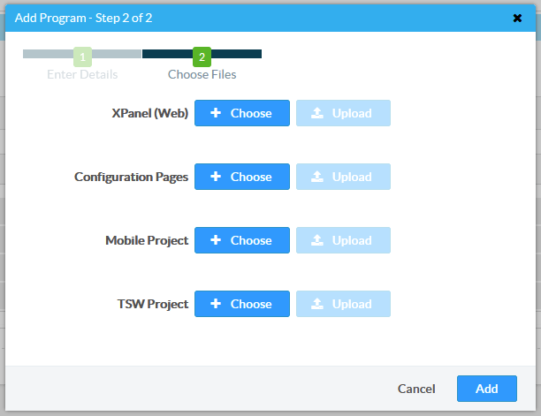 On the next slide, we can call out other files to upload along with this program. We don’t have any so just push Add: