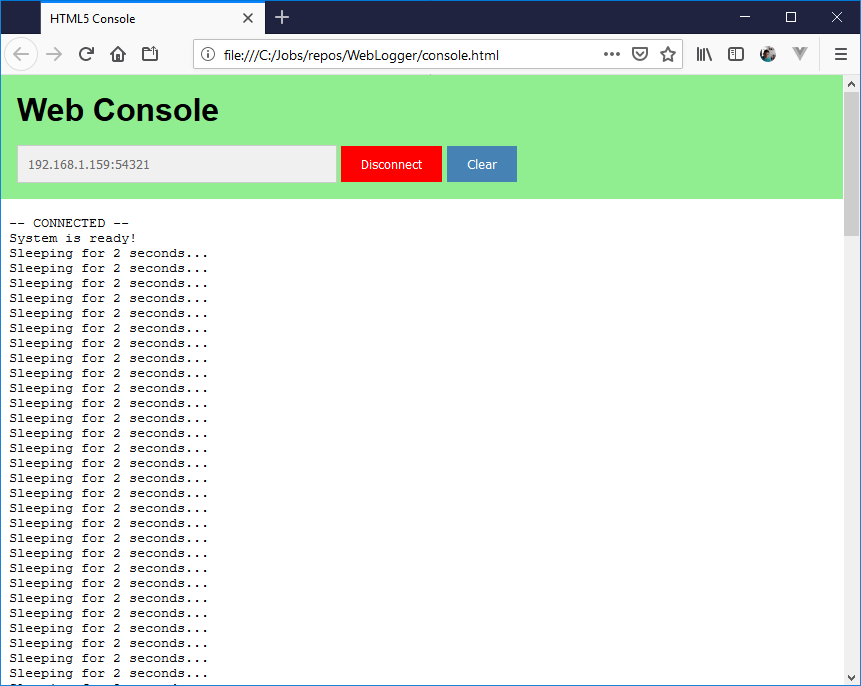 Hit the Disconnect button then Clear. With a clean console, hit Connect again, and…