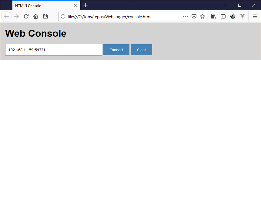 We’ll add the newline at the end of the new text rather than encoding it into our message. OK, you should be able to open this page in your favorite web browser, and connect to the program running on VC-4 again:
