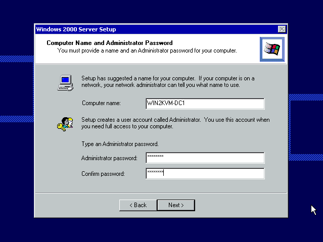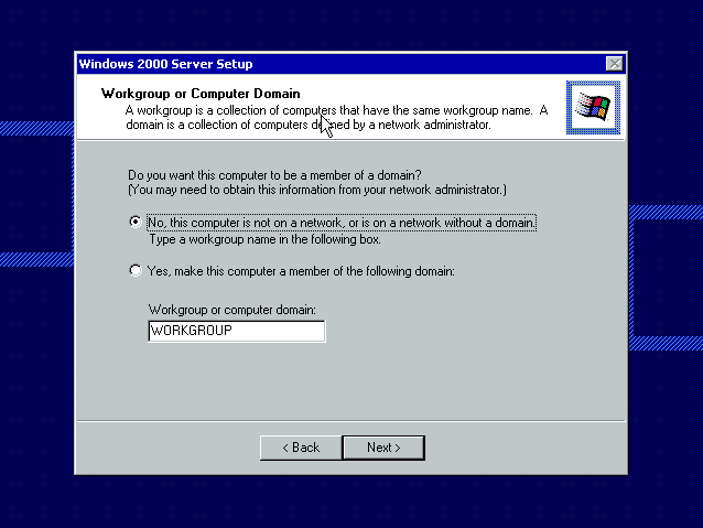 To begin, you need the 4 setup floppies to get to a point where the rest of the OS can be installed from CD. We’ll create a single NTFS partition using the installer.