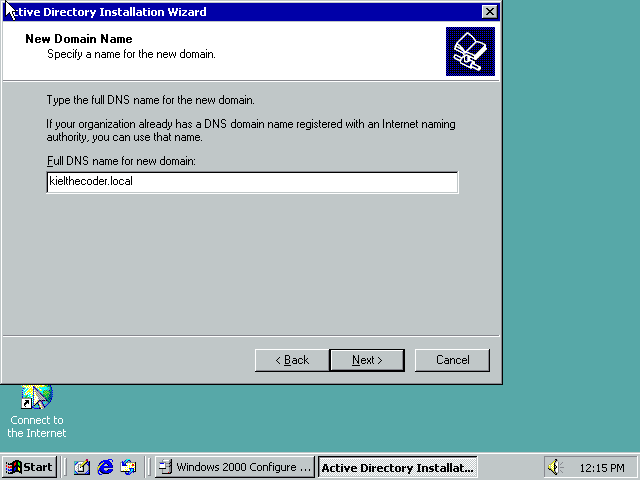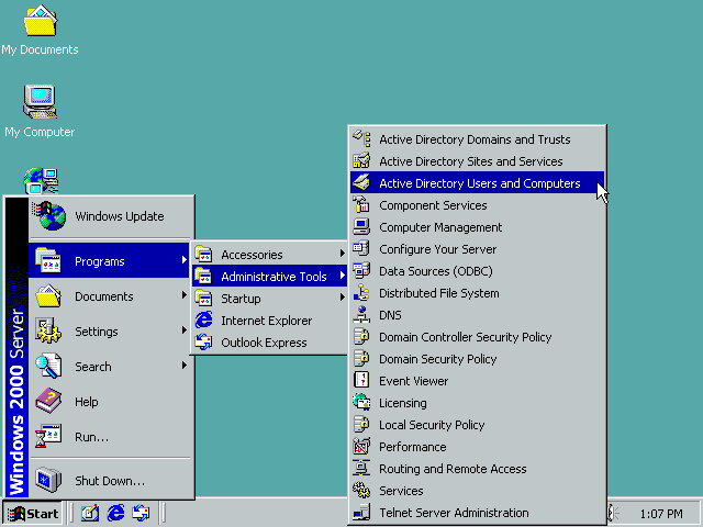At this point I was going to add an Exchange 2000 server to the domain, but it’s really difficult to find installation media to play around with.