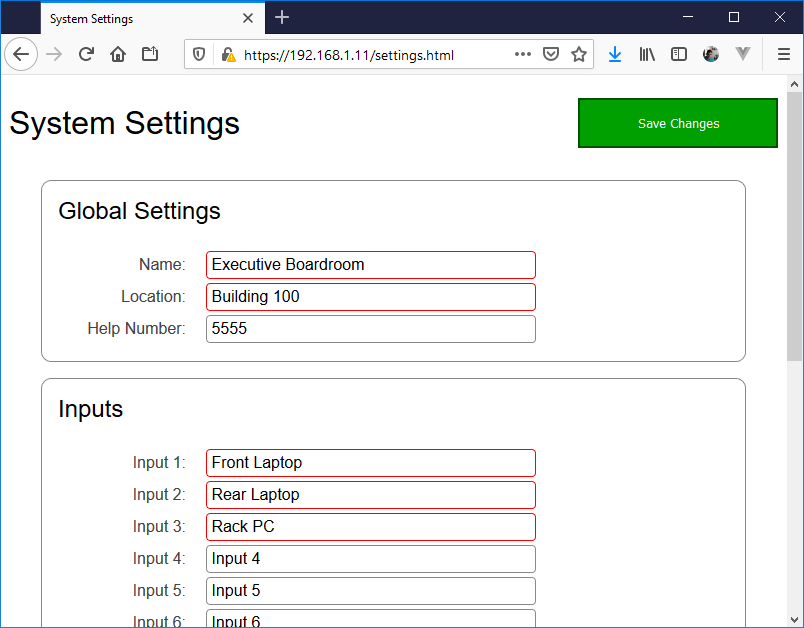 We’re all done with the SIMPL# backend. Now let’s add a little more polish to the frontend. Start by adding a Save button to the top of settings.html: