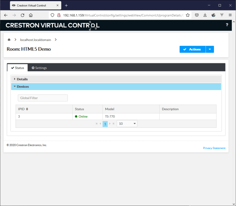 Because our VC-4 server could be running programs for multiple rooms, it needs a way to identify which room equipment is trying to connect to. Luckily, IP Tables now include a field for ROOM ID, so we can update that on our touchpanel to connect to the correct program. Update the IP Table on our touchpanel: