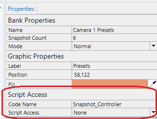 Put Camera 1 Presets into Code Name, and you should see Script Access change to All: