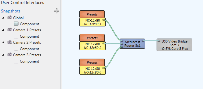 One thing that confused me at first in Q-SYS was how to store camera presets. QSC has a lot of good training videos that cover nearly every topic, so eventually you’ll learn they do this using snapshots. Snapshots are capable of grabbing pretty much any control and saving/restoring values to it.